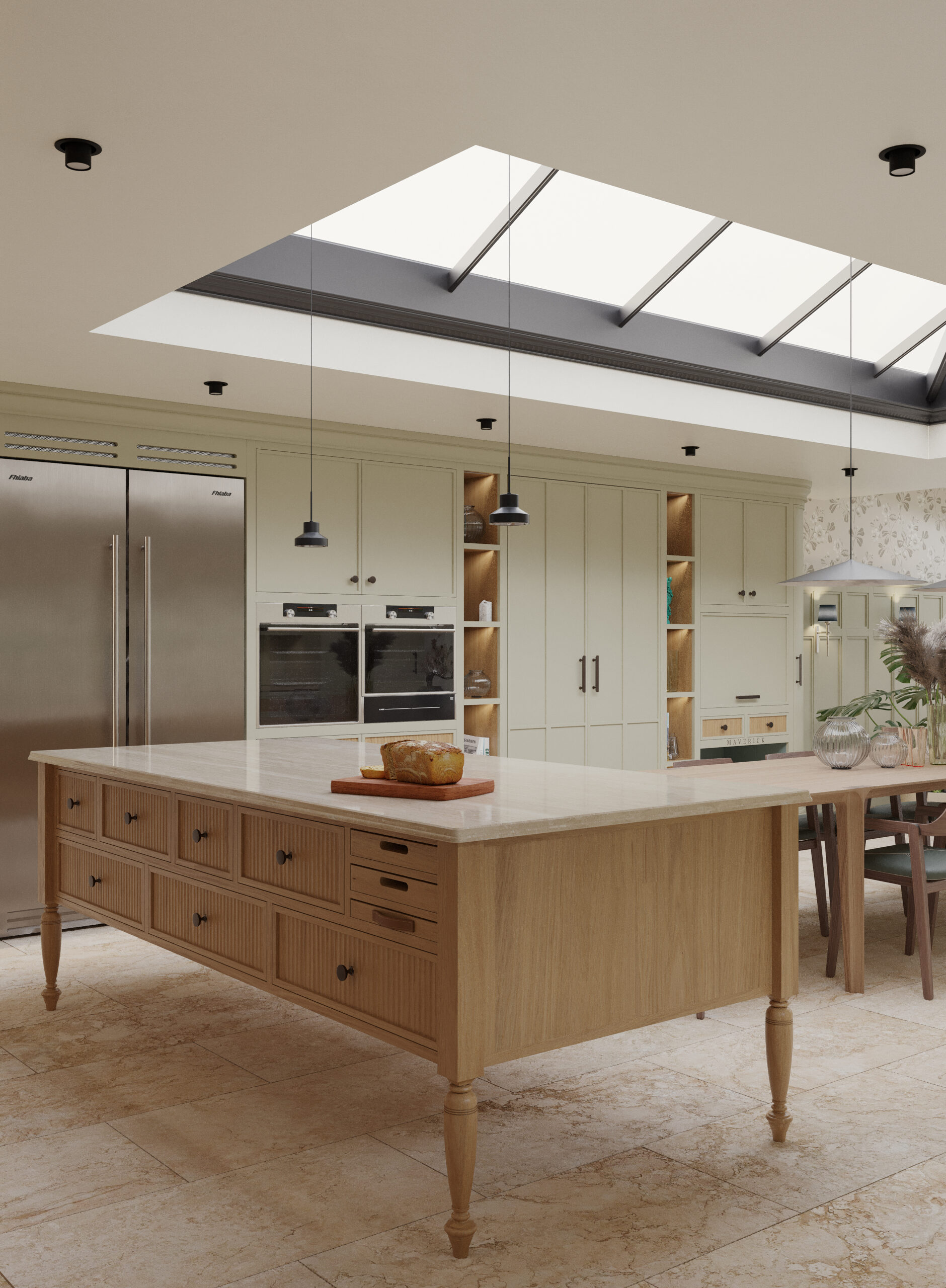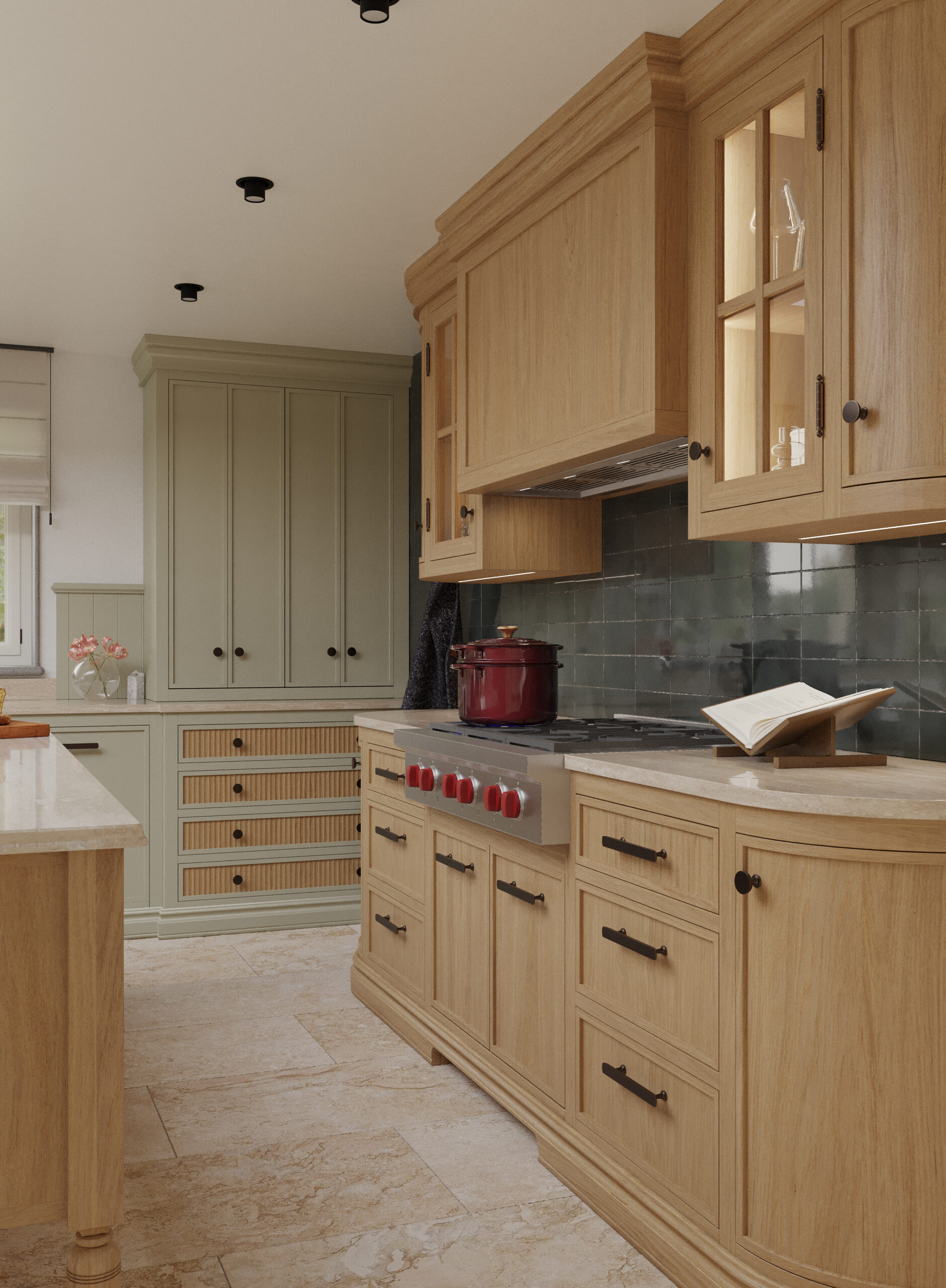 Questa cucina su misura si sviluppa attorno a un’isola componibile in rovere naturale, con gambe tornite ed è inserita in un contesto residenziale ispirato al fascino di un cottage di tradizione anglosassone. Il progetto interpreta uno stile informale ma iconico, dove comfort, calore e un profondo legame con la natura guidano ogni scelta di forme e materiali. Tutte le cucine e gli arredi di Martini Interiors sono progettati con dedizione e cura dei dettagli, prodotti in Italia e garantiscono il massimo controllo sull’artigianalità e sulla qualità dei materiali.